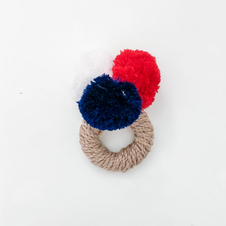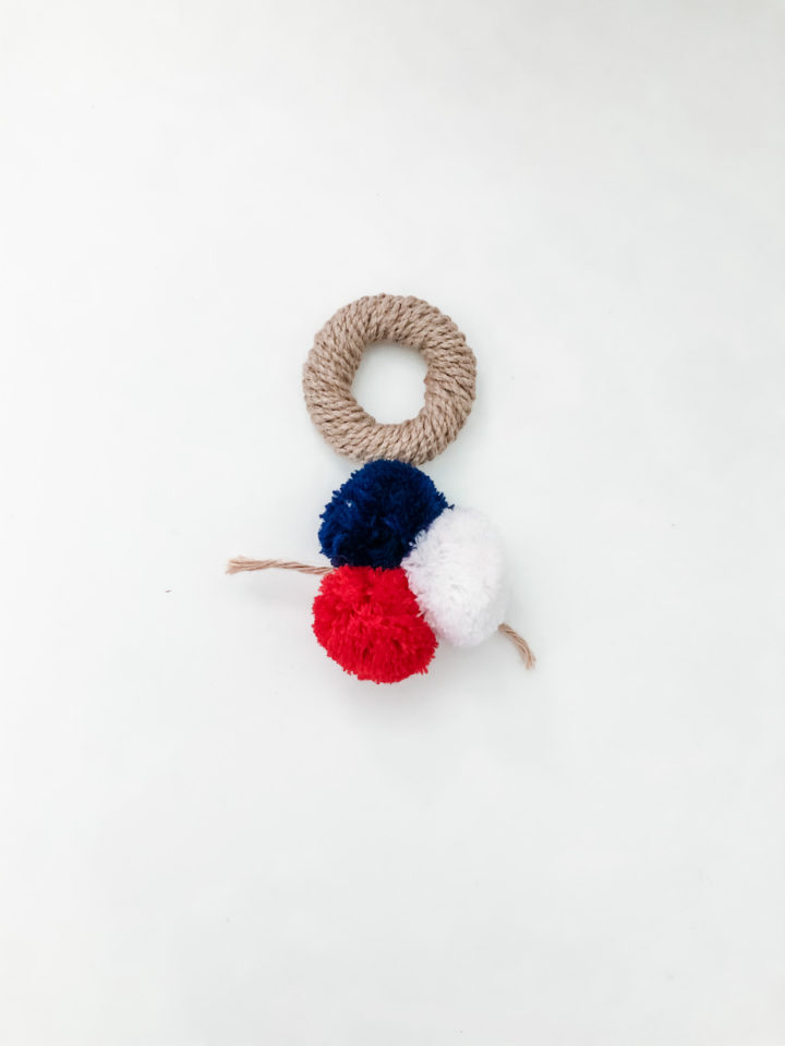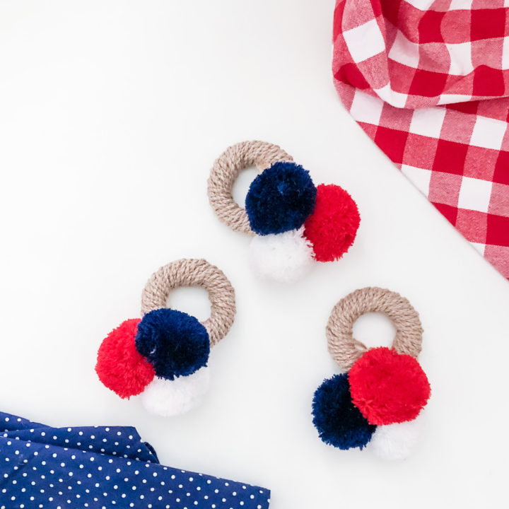 Just before Memorial Day I saw an Instagram photo from FashionableHostess with a patriotic tablescape featuring some adorable patriotic pom napkin rings. I love a good pom pom and knew I wanted to have some of these in time to set my 4th of July table.