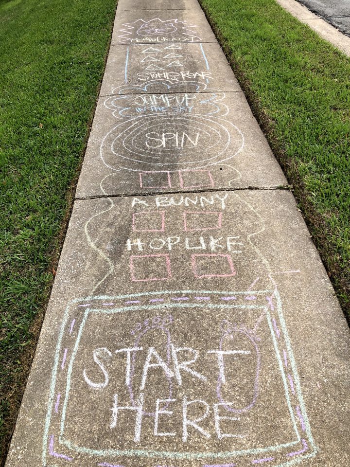 We also recently created a “track” with chalk to race scooters on which was a big hit.