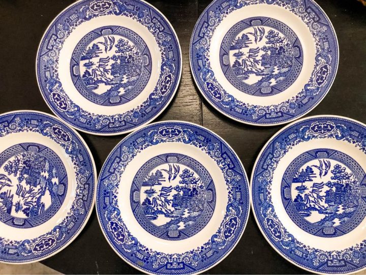 I mistakenly bought this set of 5 Blue Willow plates after errantly placing a bid on ShopGoodwill.com. I thought I was bidding on a set that was Churchill brand to complete my set. These were smaller and didn’t match so I decided to sell them. I bought them for $15 and sold them for $26 so the mistake ended up turning me a $11 profit!
